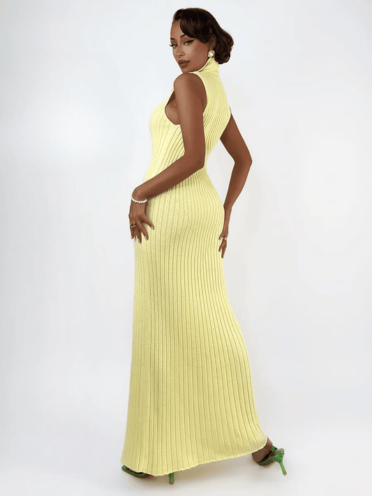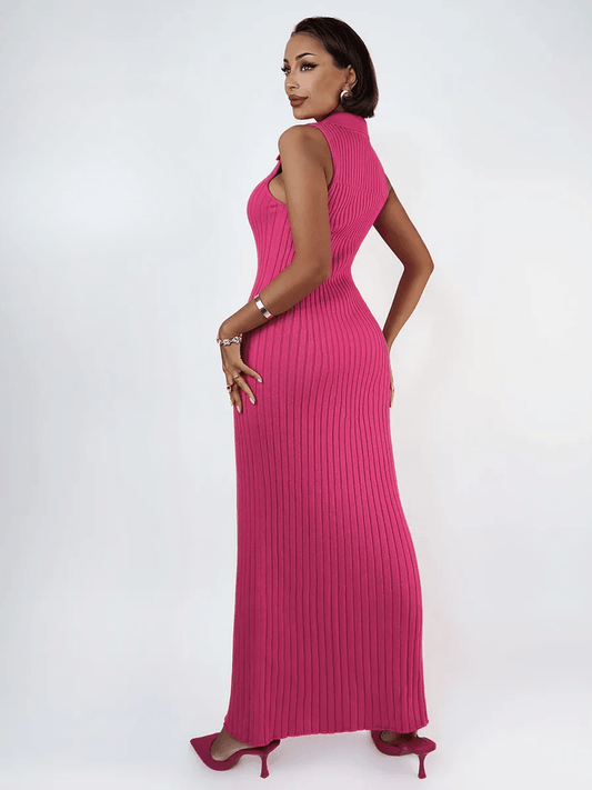 Maxi Dress Eclipse featuring a long sleeve silhouette and front slit, perfect for elegant evenings and events.
