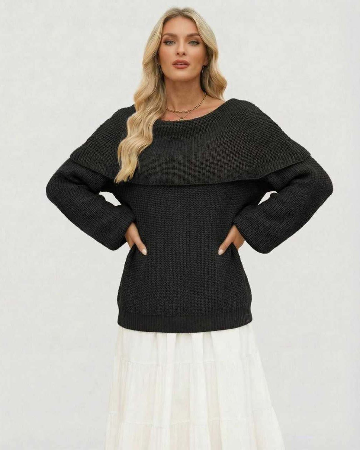 كنزة نسائية مثالية مكشوفة الكتفين لفصلي الخريف والشتاء، للخروجات اليومية والمناسبات المسائية.