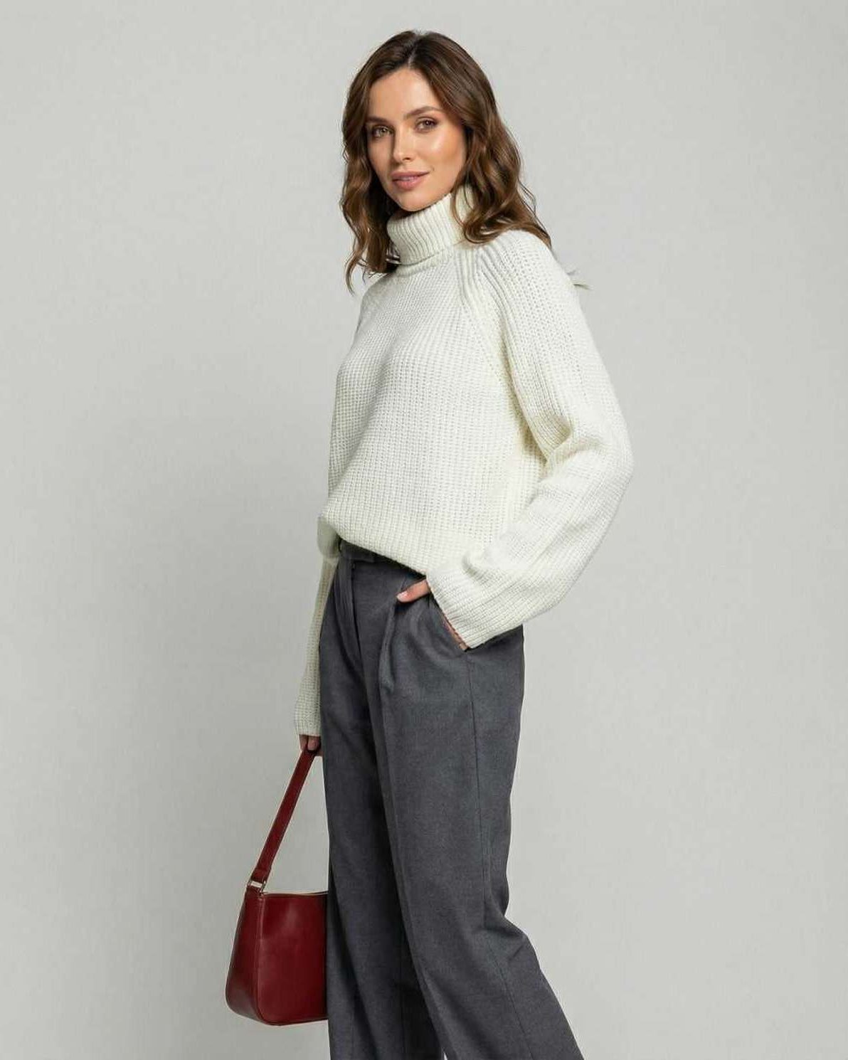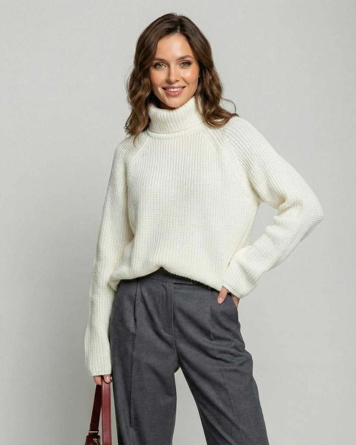 En tidløs cremefarvet rullekravetrøje designet til ubesværet elegance.