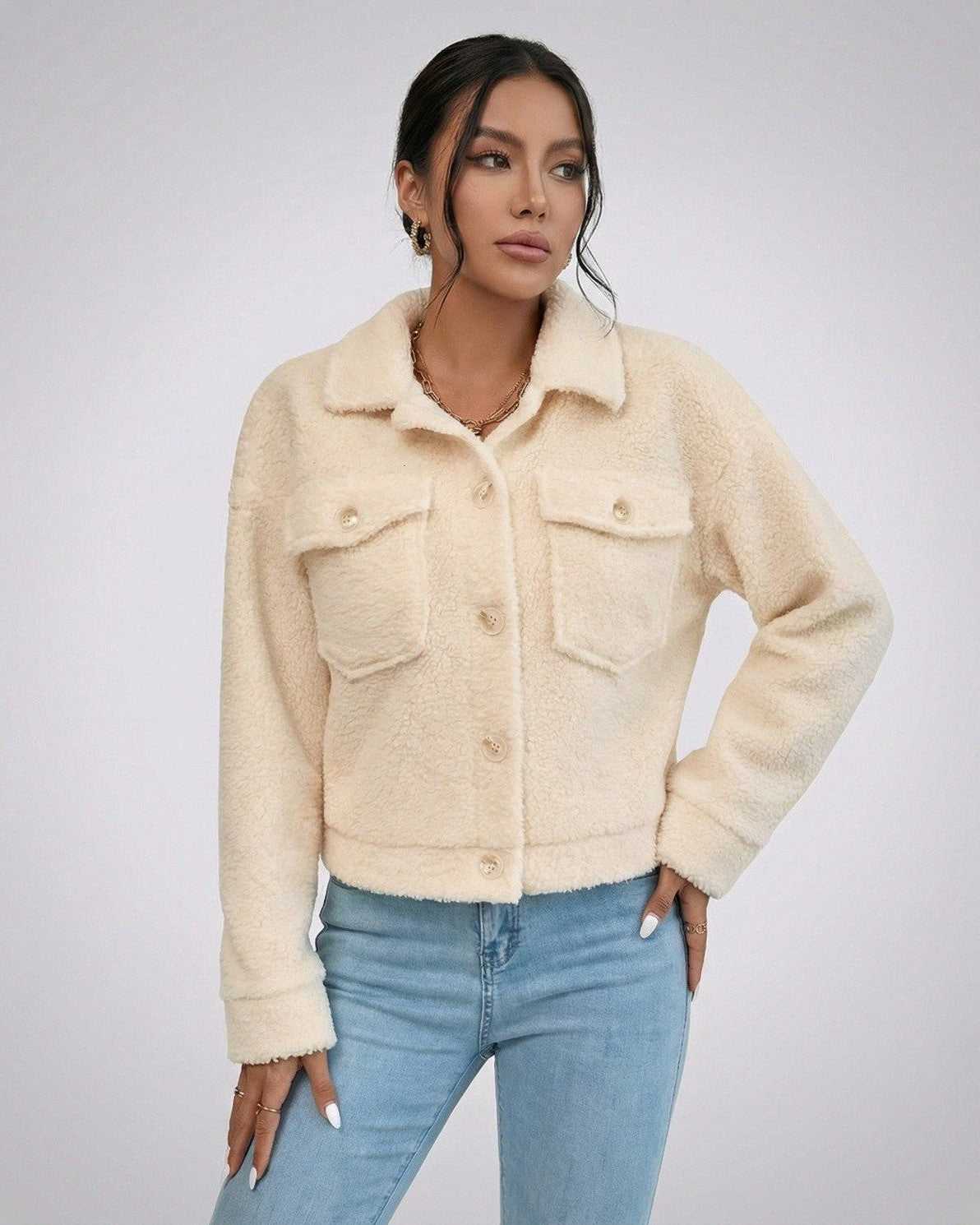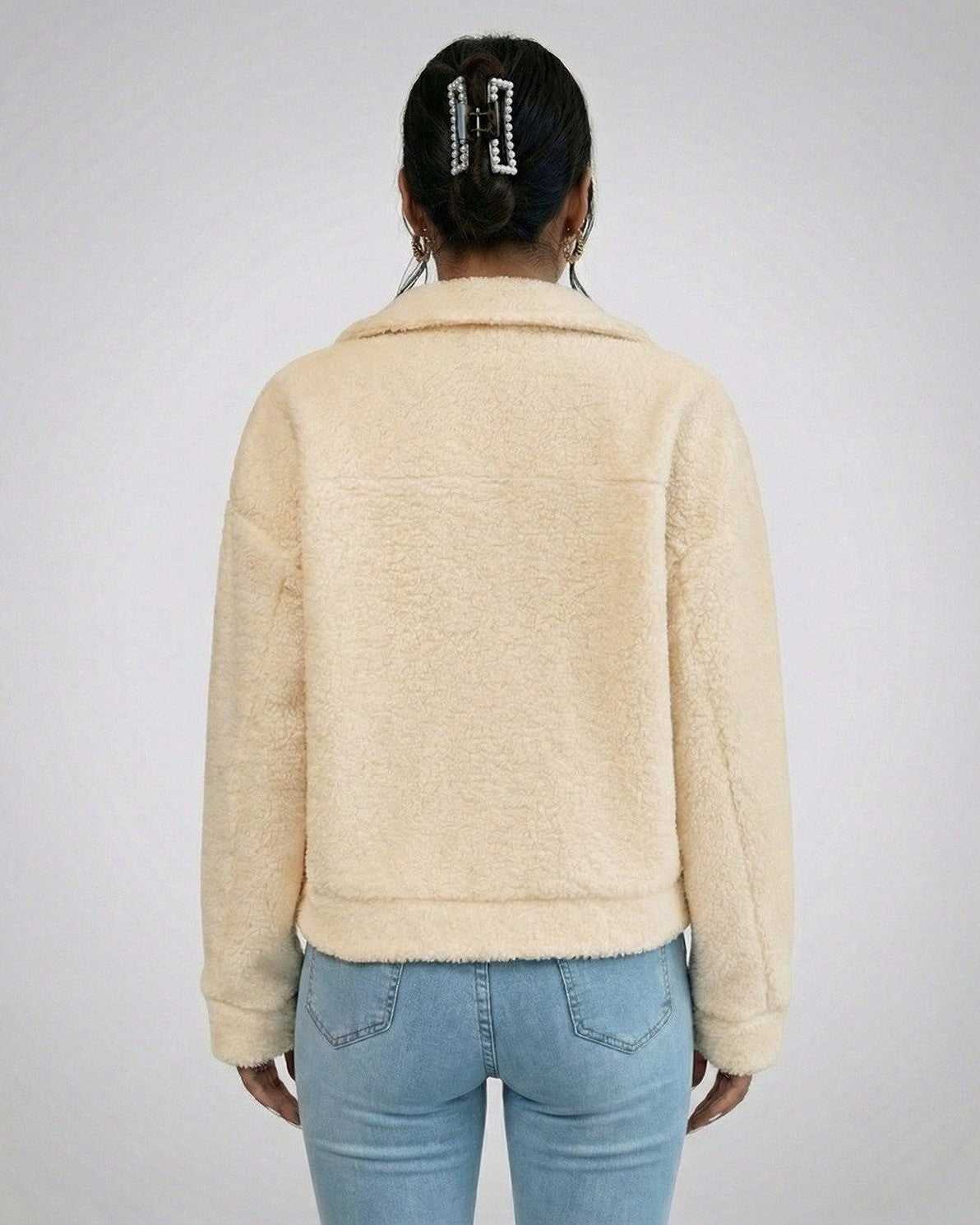 Ένα διαχρονικό γυναικείο μπουφάν από συνθετική γούνα, φτιαγμένο για ζεστασιά και διακριτική πολυτέλεια.