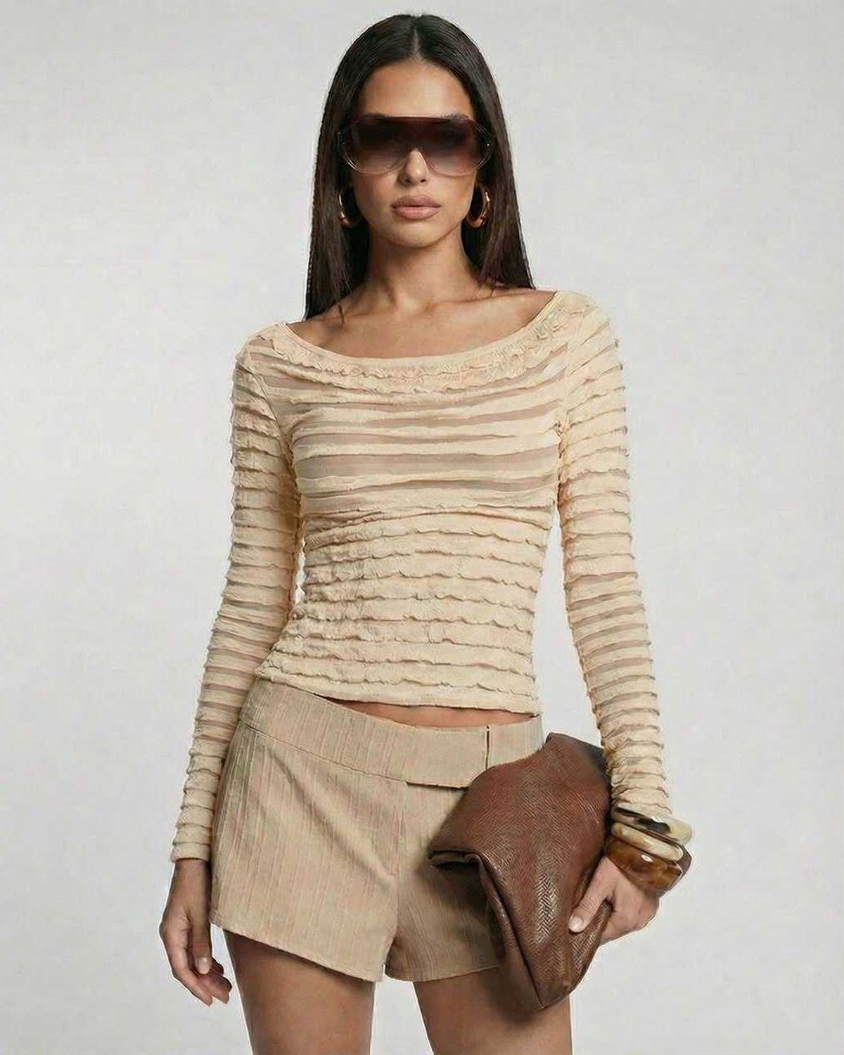 The versatile beige shade pairs effortlessly with tailored shorts, structured trousers, or denim. Whether styled for casual wear, workwear layering, or evening looks, this women’s long sleeve pullover transitions seamlessly from day to night.