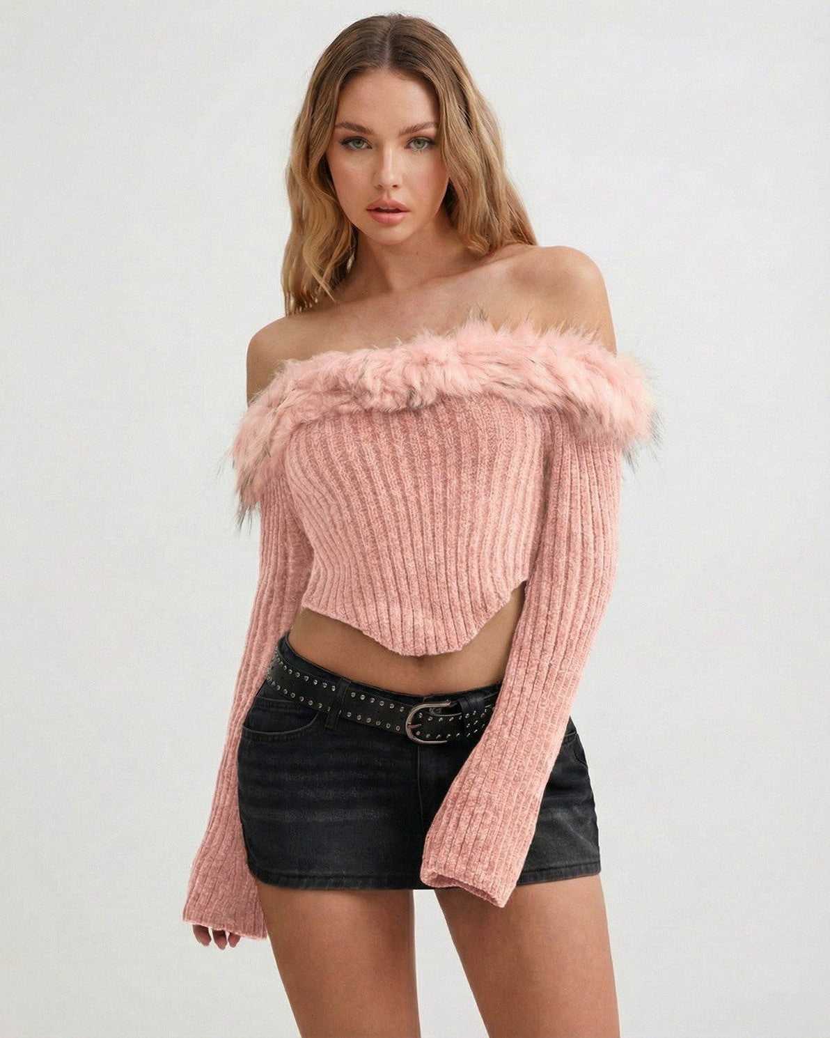 See õlgadeta pluus esitleb vormitud kitsast siluetti, mida rõhutab struktureeritud soonikuga kudum. Pikkade varrukatega disain tasakaalustab lühikest pikkust, samas kui kunstkarusnahast krae lisab sügavust ja tõstetud stiili, muutes selle ideaalseks pidu-, õhtu- ja talveüritusteks.