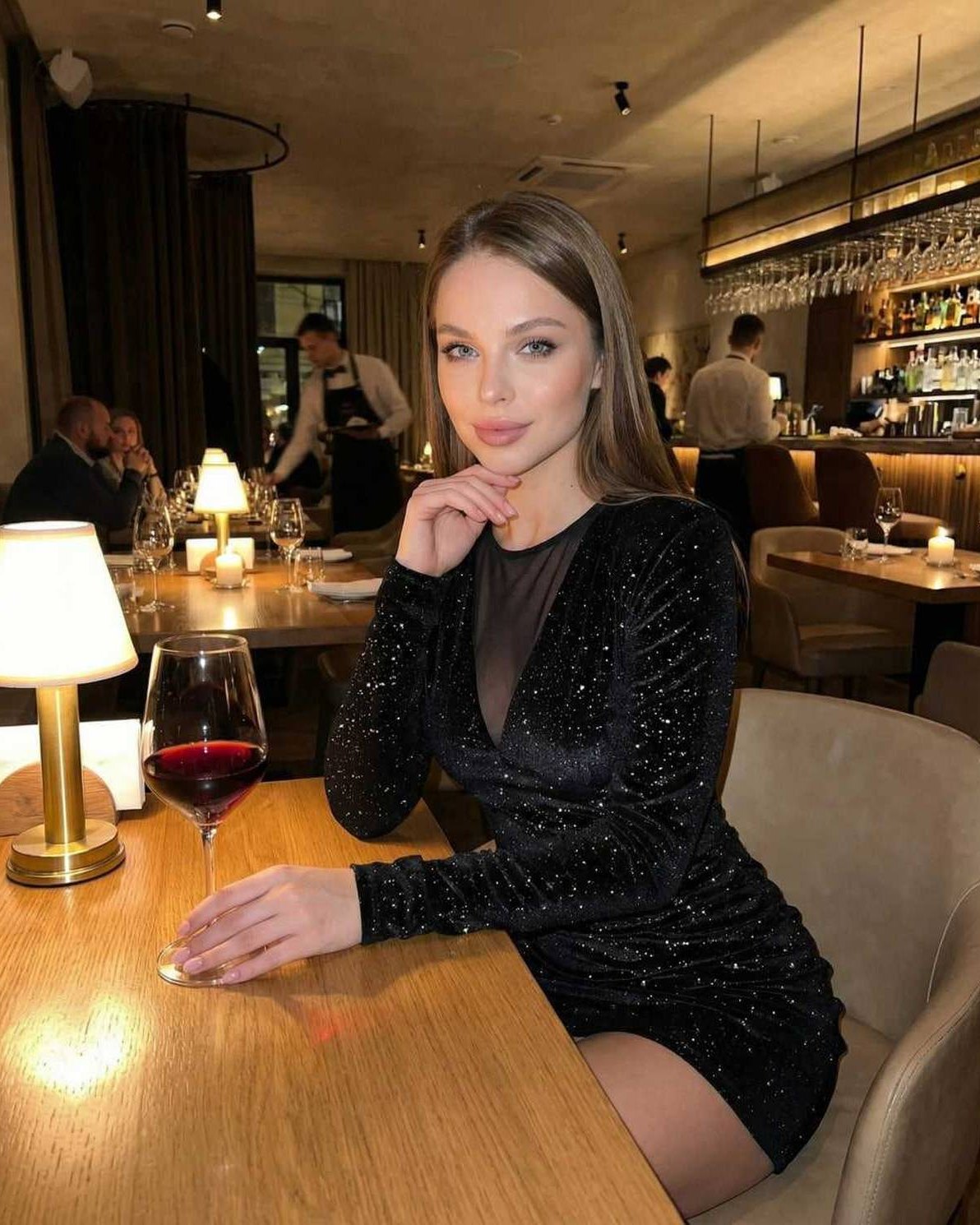 Kogege julget elegantsi Nova mini kleidiga, mis on valmistatud kõrge venivusega sünteetilistest kiududest, sealhulgas polüestrist ja elastaanist. See kitsas mini kleit on tehtud läikivast mustast sametkangast, mis on kaunistatud sädelevate detailidega, mis püüavad valgust ja loovad lummava efekti. Disainis on klassikaline O-kaelus läbipaistva võrgusilma paneeliga ning pikad varrukad, mis annavad tasakaalustatud välimuse, ühendades võlu ja peenetundelisuse.
