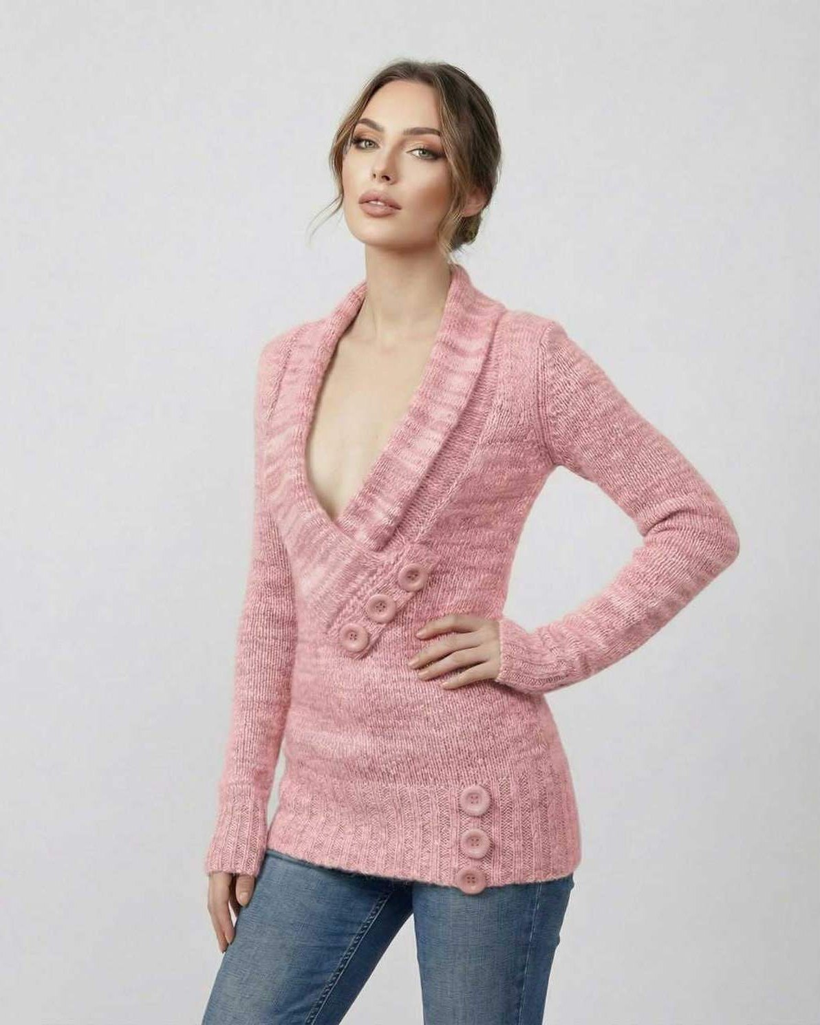 Mitmekülgse naiste V-kaelusega kampsunina sobib see vormilt keha järgiv kampsun suurepäraselt teksade, lõigatud pükste või struktureeritud välisriiete alla kihiliseks kandmiseks. Pehme roosa toon lisab hooajalist rafineeritust, säilitades samas ajatu kudumiriiete võlu.