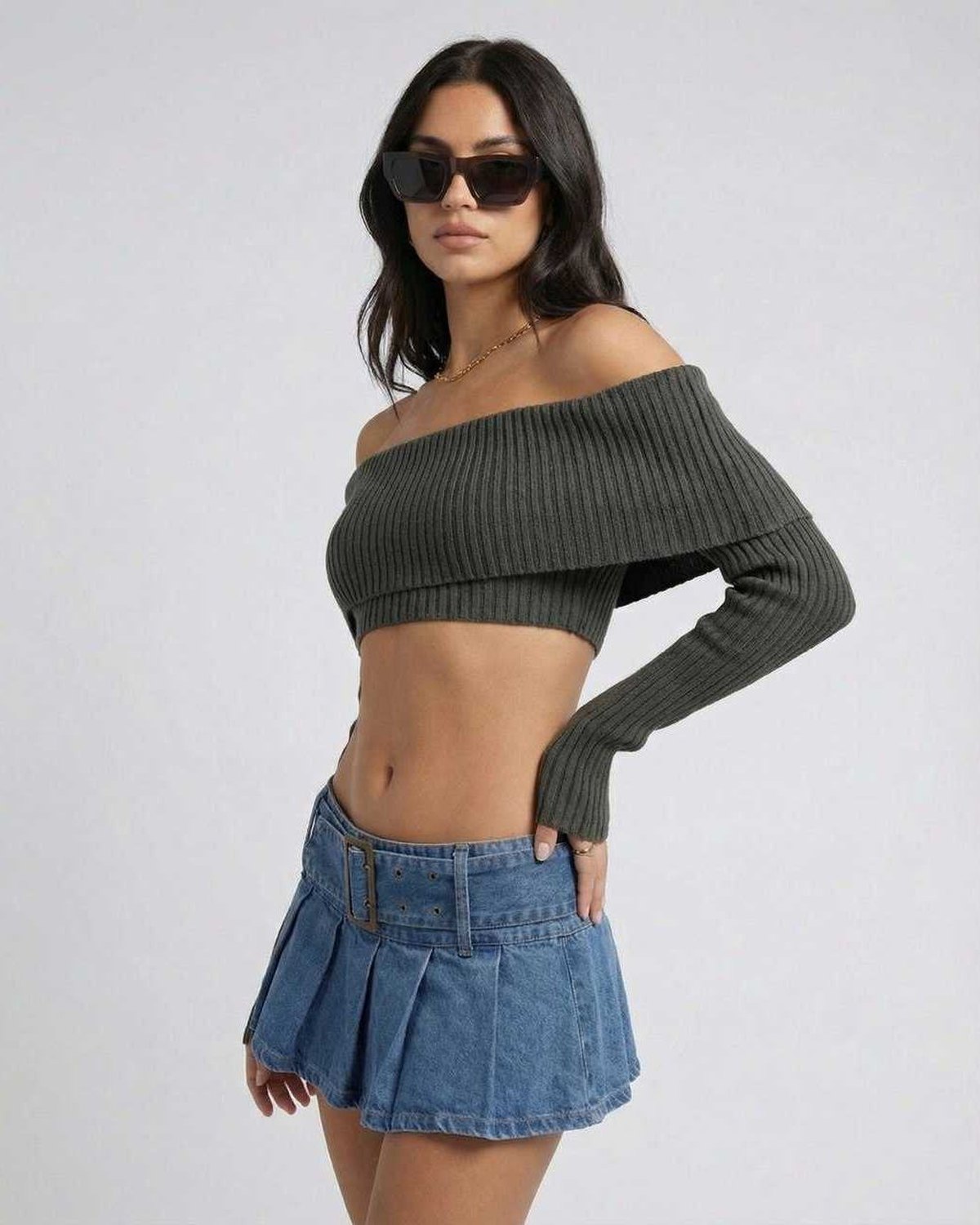 Yksivärisenä ja muotoillulla ribbineulepinnalla varustettu syksy-talvi lyhyt pusero yhdistyy vaivattomasti korkeavyötäröisiin farkkuihin, räätälöityihin housuihin tai minihameisiin. Kevyt, vain 130 g painava, mutta tarpeeksi lämmin viileämmille päiville, se on monipuolinen välttämättömyys nykyaikaisessa vaatekaapissa.