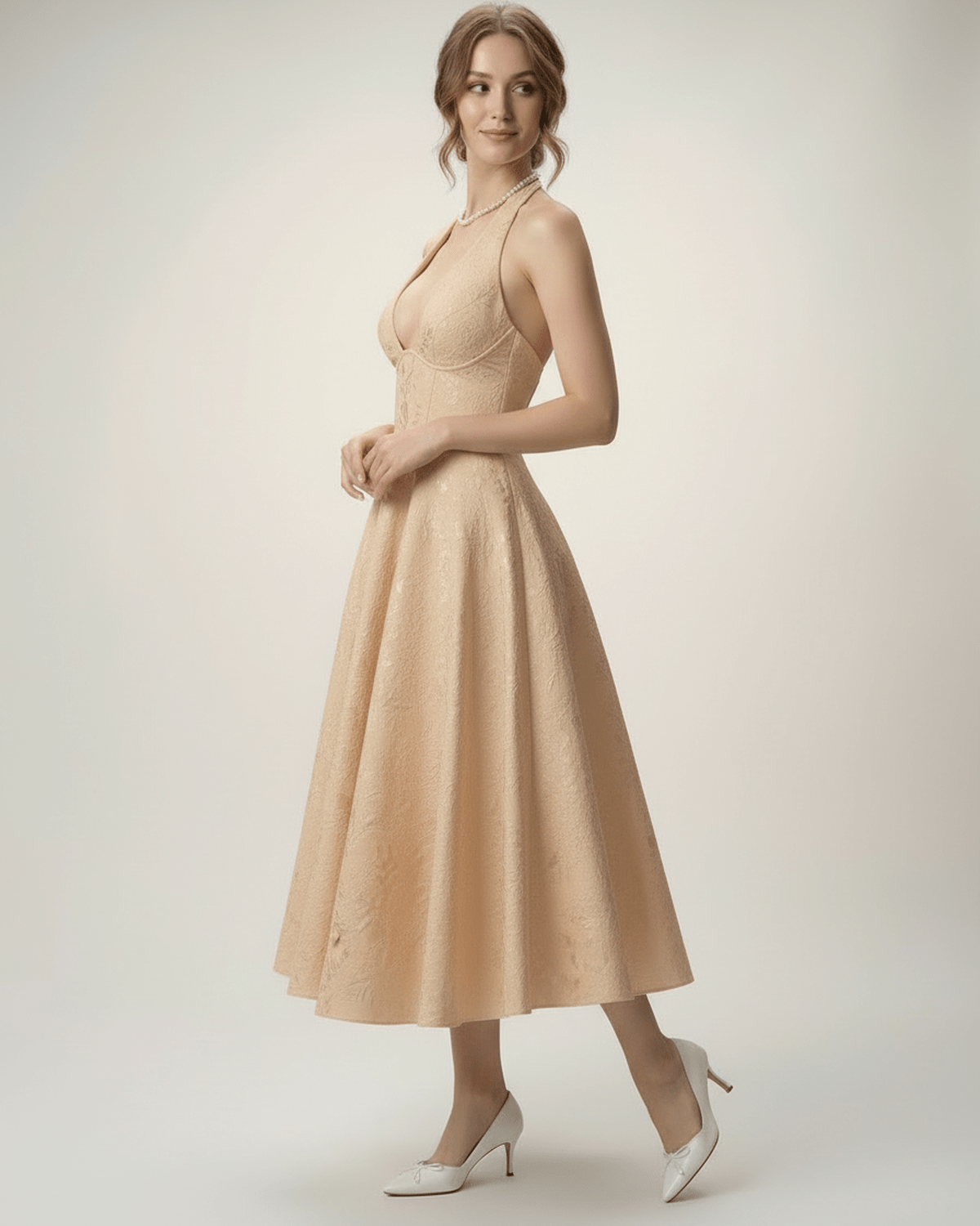 Robe Midi Elara – Silhouette élégante en ligne A avec encolure halter et coupe structurée