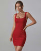 Presentiamo l'abito mini Ruby, realizzato in una morbida maglia costina in un ricco tono rosso classico. Questo elegante mini abito presenta una silhouette bodycon valorizzante con scollo quadrato e design senza maniche, combinando perfettamente l'eleganza senza tempo con uno stile contemporaneo.