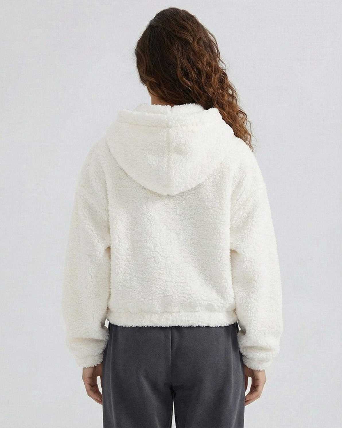 Gemaakt van hoogwaardig polyester, heeft hij een weelderige structuur, een capuchon en een volledige ritssluiting aan de voorkant voor dagelijkse gebruiksvriendelijkheid. De elastische zoom en lange mouwen zorgen voor een flatterende vorm en behouden tegelijkertijd het hoogste draagcomfort.
