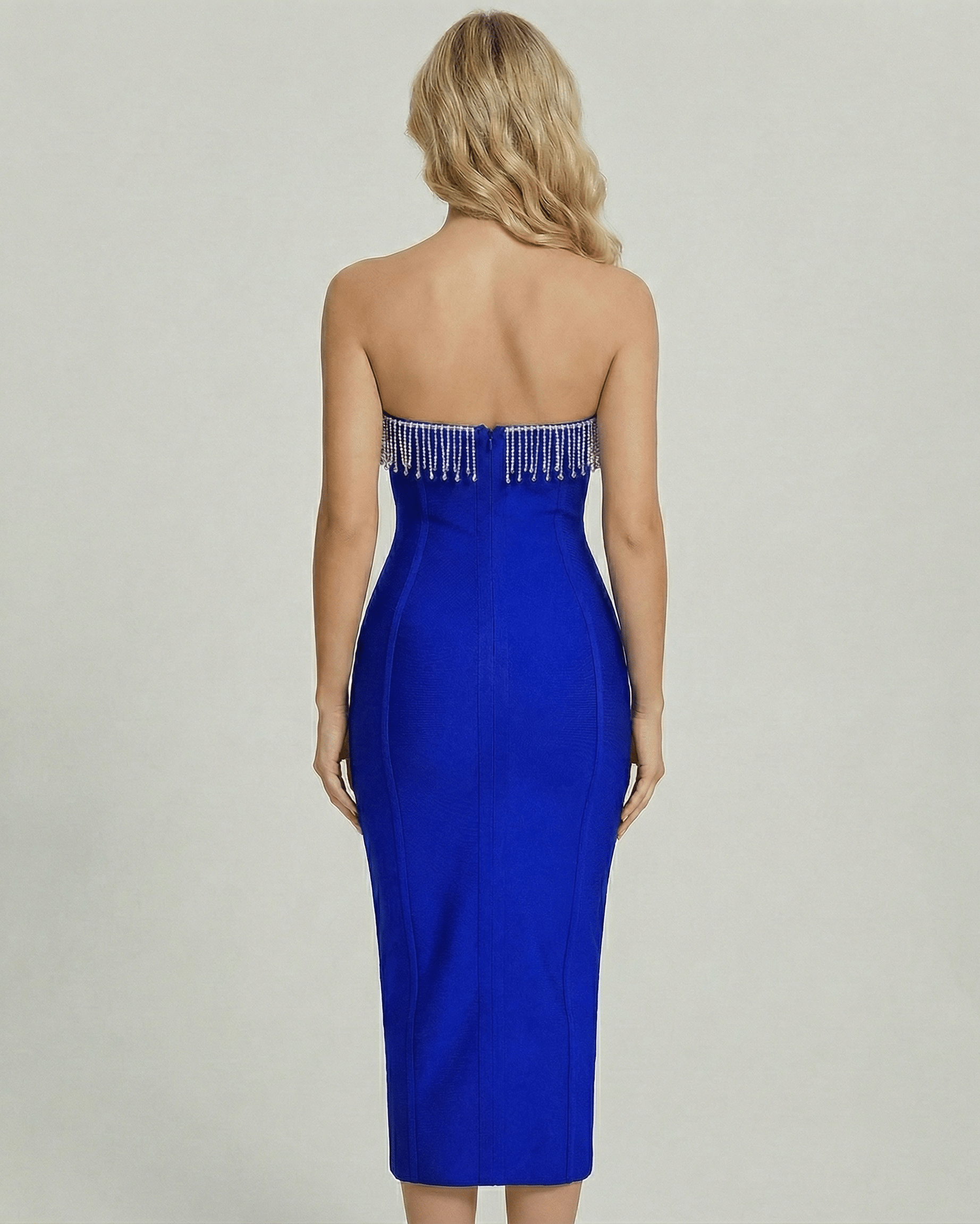De Vela Midi-jurk straalt een gedurfde, verfijnde stijl uit met haar levendige blauwe tint en glamoureuze kralenversiering aan de halslijn. Ontworpen met een aansluitend koker silhouet, benadrukt deze strapless midi-jurk je vormen terwijl ze een elegante, verzorgde uitstraling behoudt. Ideaal voor cocktailfeesten, avondgelegenheden en formele evenementen, is de Vela-jurk een uiting van zelfvertrouwen en luxe.