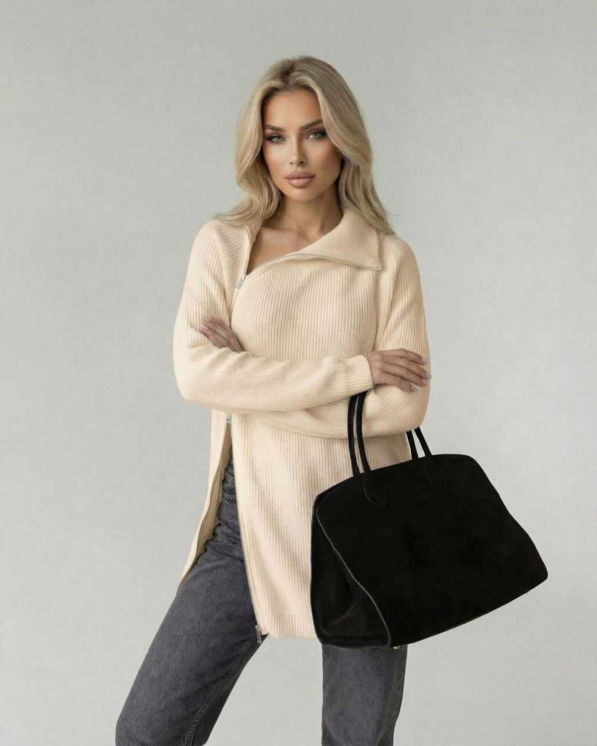 Een verfijnde damestrui, ontworpen voor moeiteloos seizoenslagen.