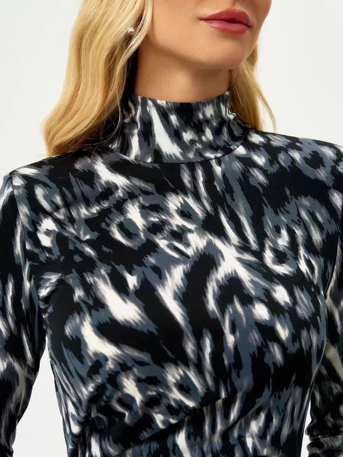 The Astria Midi Dress delivers a bold, modern aesthetic with its striking monochrome print and refined body-contouring design. This women’s midi dress balances sophistication with ease, offering a polished look ideal for evenings out, special occasions, or elevated everyday styling. Its smooth, elastic knit fabric creates a flattering fit that highlights natural curves without compromising comfort.