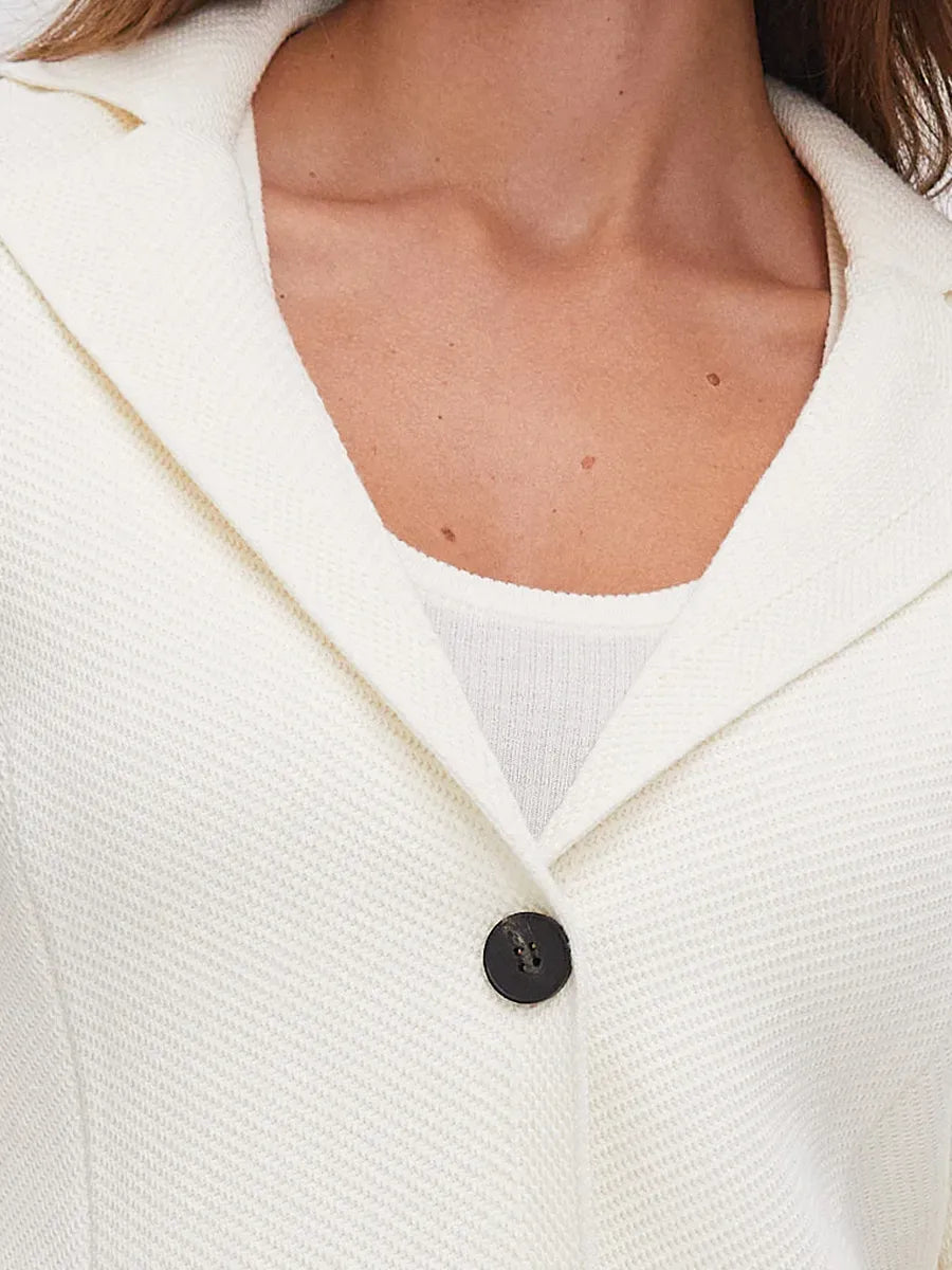 The blazer’s unique diagonal knit texture, reminiscent of classic tweed, adds refined texture without bulk. Its unlined design and button closure make it a versatile layering piece suitable for spring and summer, while the breathable fabric keeps you comfortable.