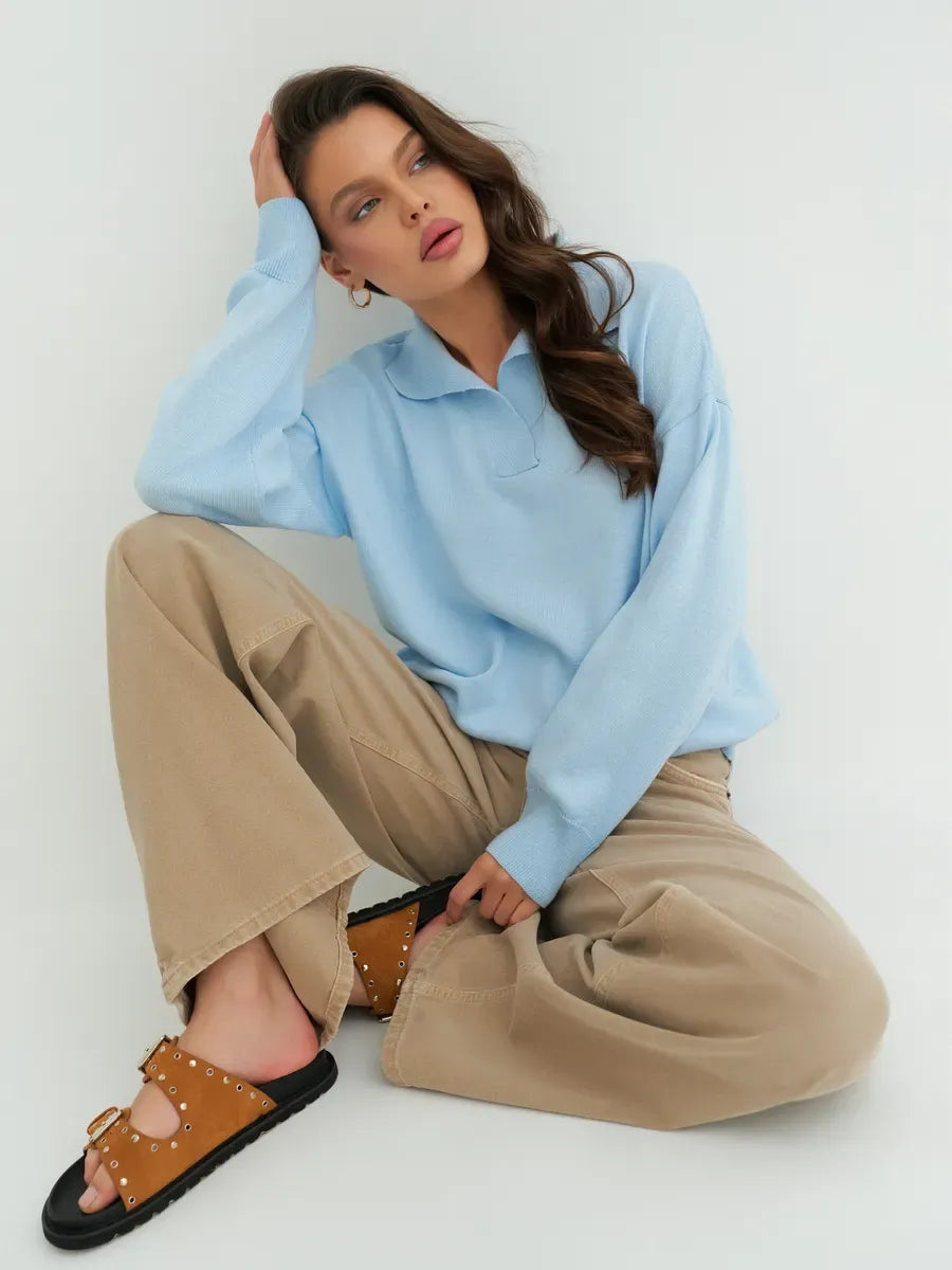 Perfect for pairing with trousers, jeans, or skirts, the Azure Sweater is an essential piece for everyday wear, office environments, and casual outings. Easy to care for with a gentle 30°C wash, it promises durability and softness through multiple wears.