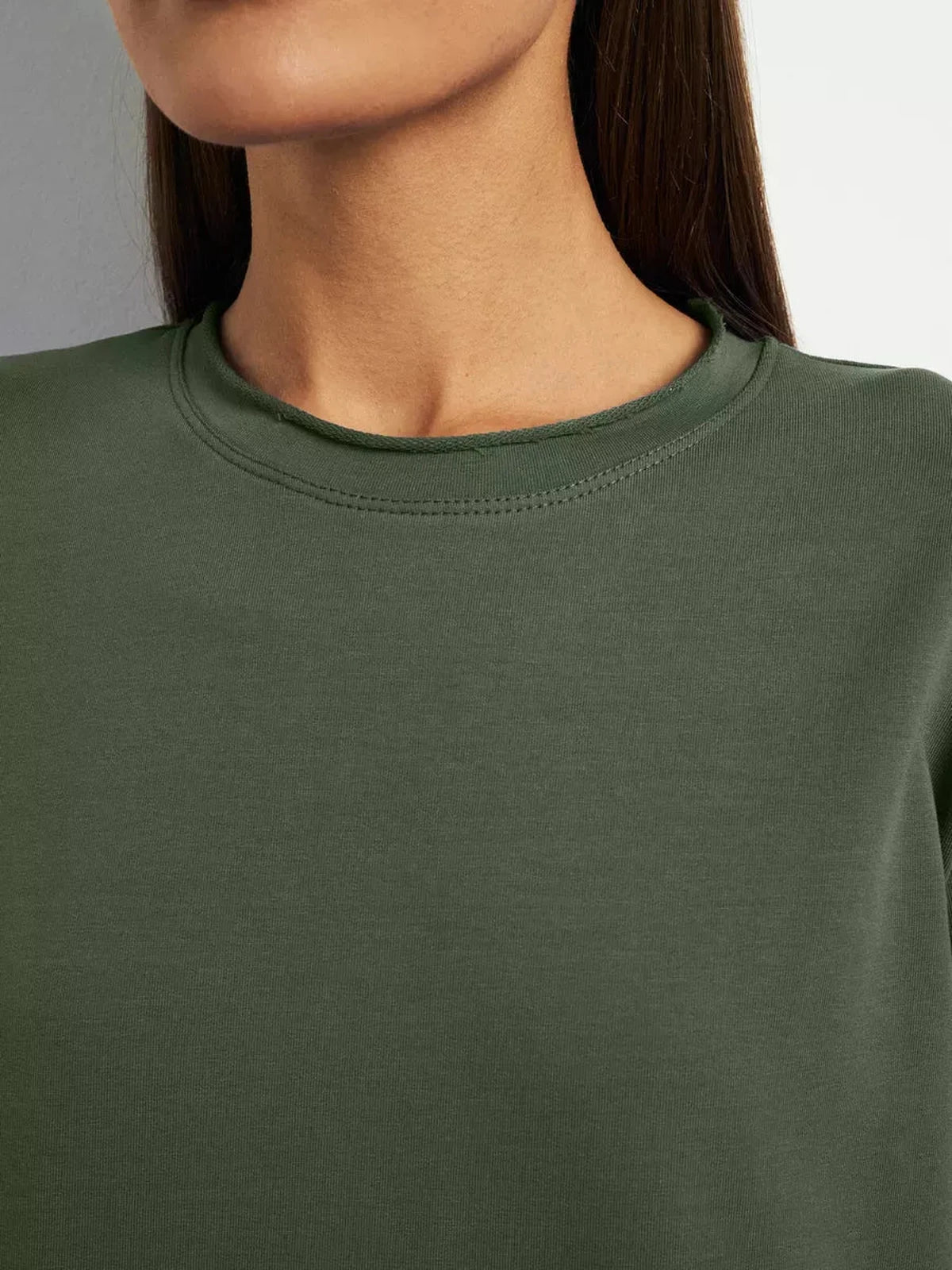 • Long sleeves with a smooth round neckline