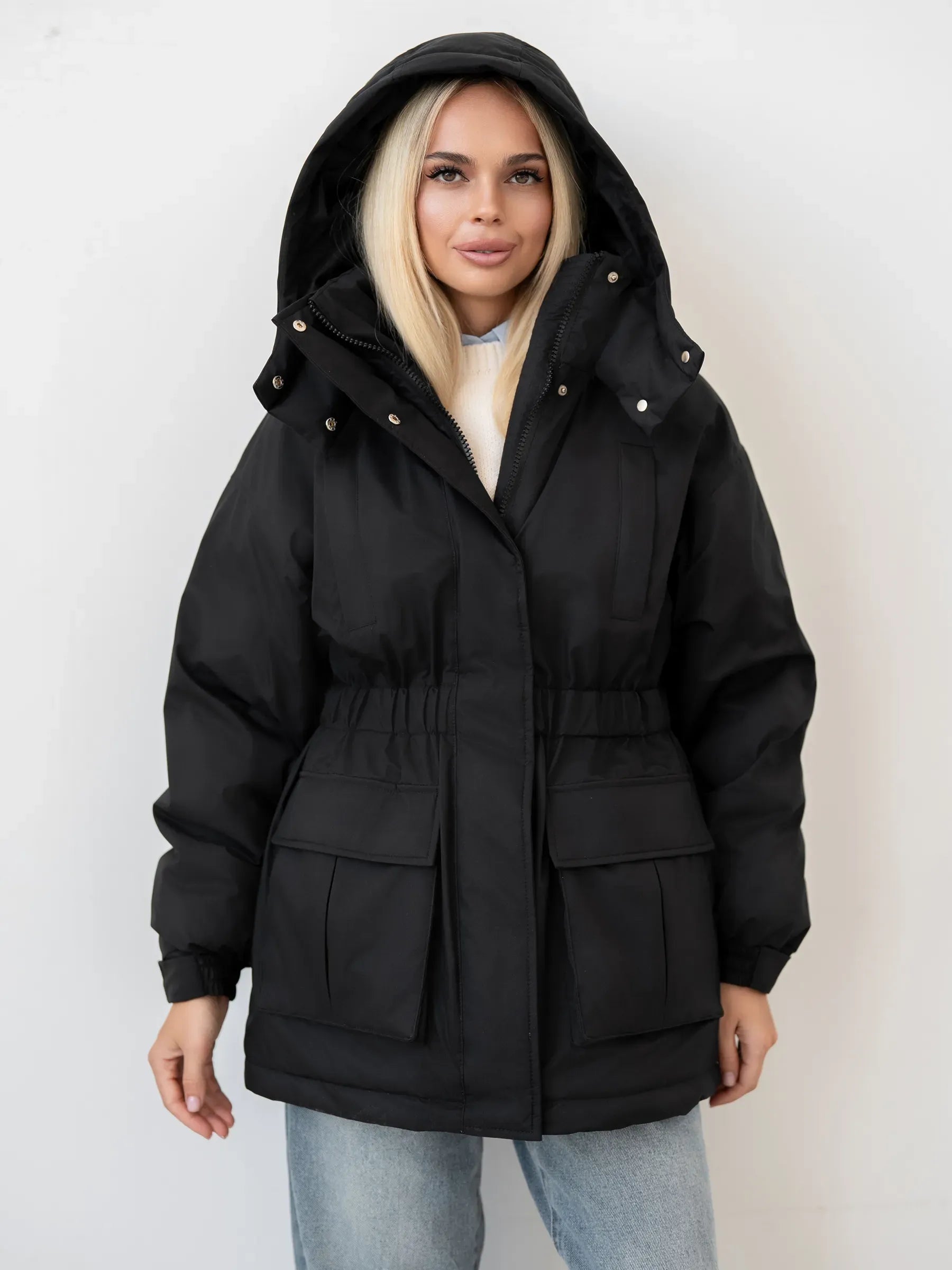 Elegant warmth and modern design in one versatile jacket.