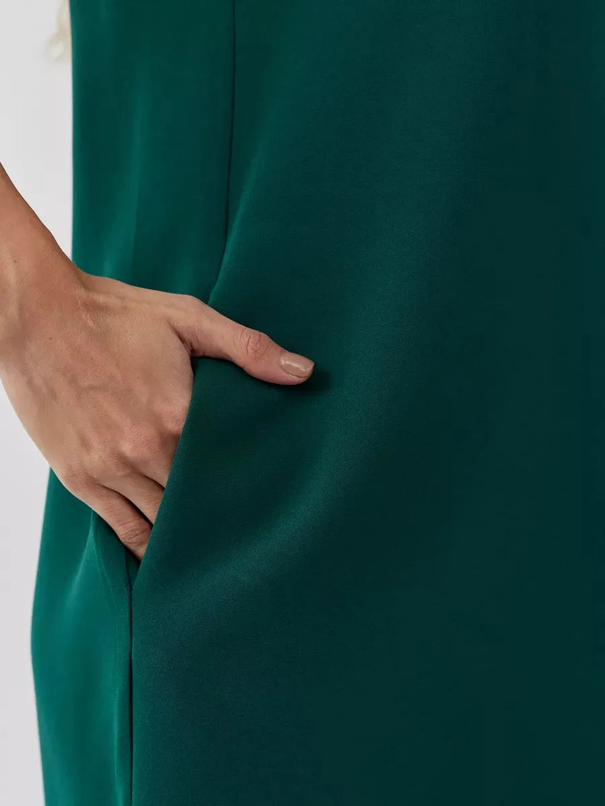 The Ivy Mini Dress offers a sophisticated and versatile choice for modern women who appreciate effortless style. Made from a breathable blend of polyester and elastane, this emerald green mini dress features a semi-fitted, relaxed silhouette with short sleeves, perfect for daily wear. The unique neckline notch adds a refined detail to its classic design.