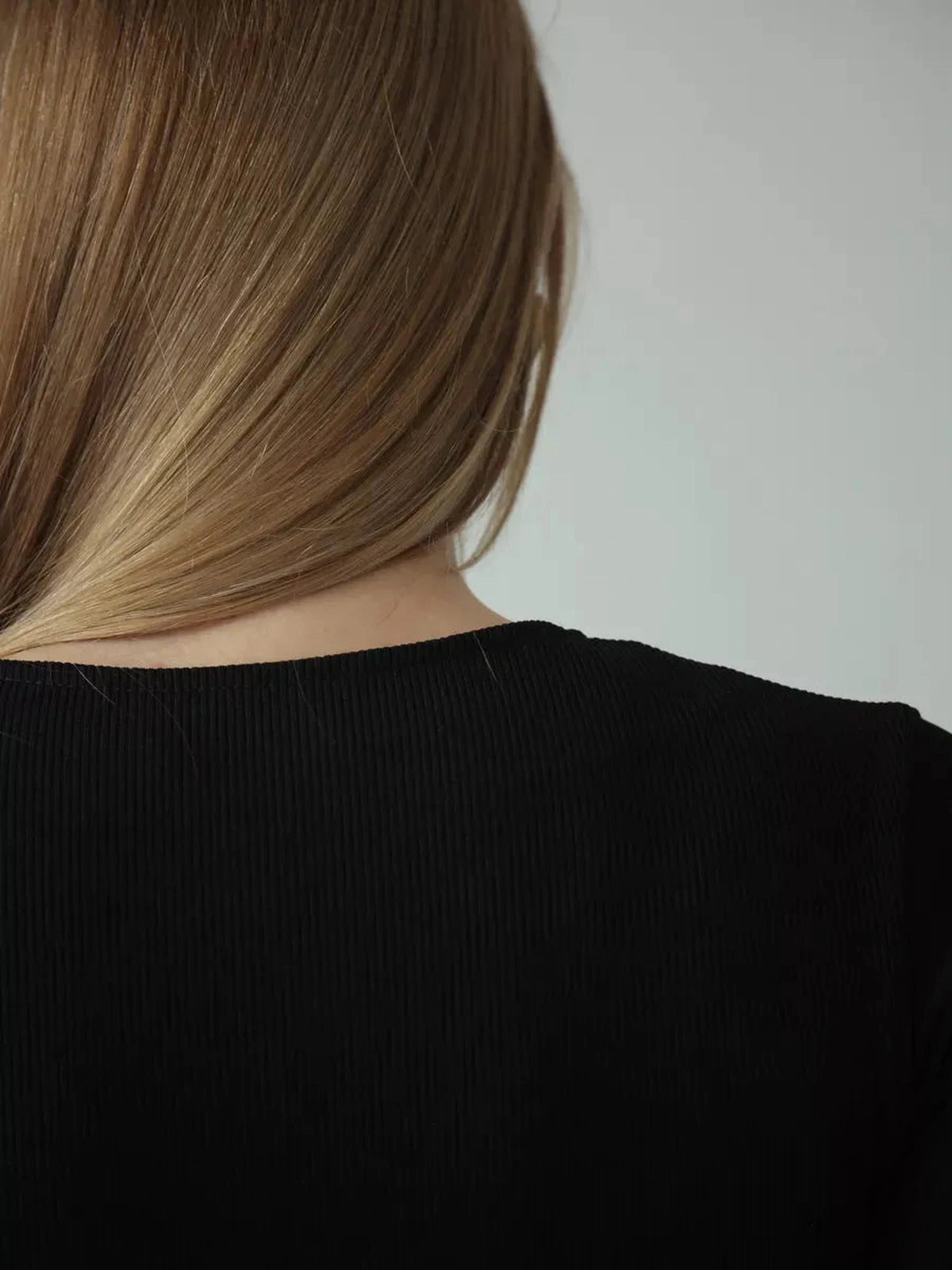 Discover the perfect blend of sophistication and comfort with the Luna Mini Dress, designed for the modern woman who values style and grace. This luxurious black mini dress features a flattering ribbed fabric and a distinctive lace-up neckline, creating a bold yet elegant statement. Crafted from a premium blend of polyester and viscose, it offers a soft, breathable fit ideal for cooler days.