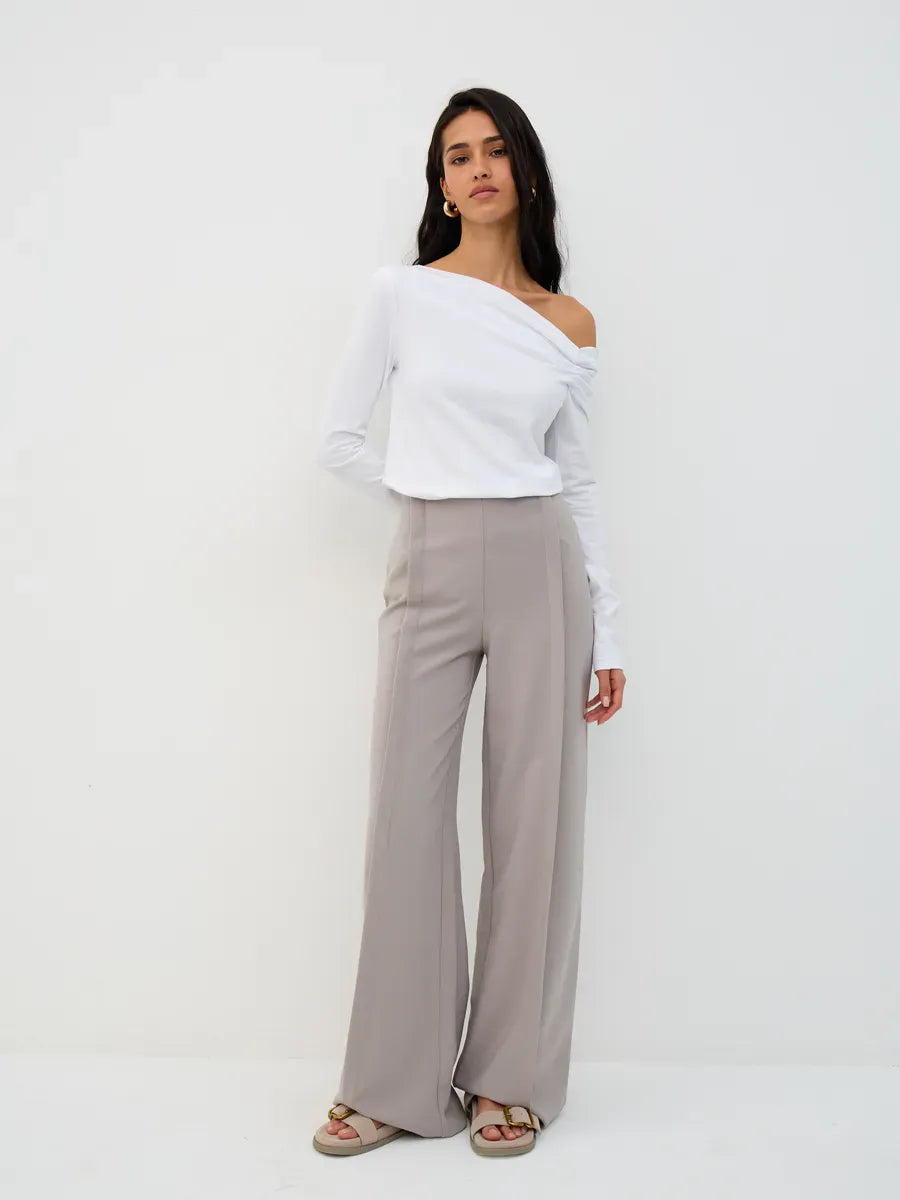 The Luna Pullover is the epitome of effortless elegance and modern sophistication. Crafted from a soft cotton-elastane blend, this fitted long-sleeve pullover features an asymmetric neckline with beautifully draped off-shoulder styling, designed to highlight refined femininity and style. The breathable fabric ensures comfort, making it perfect for both casual and special occasions.
