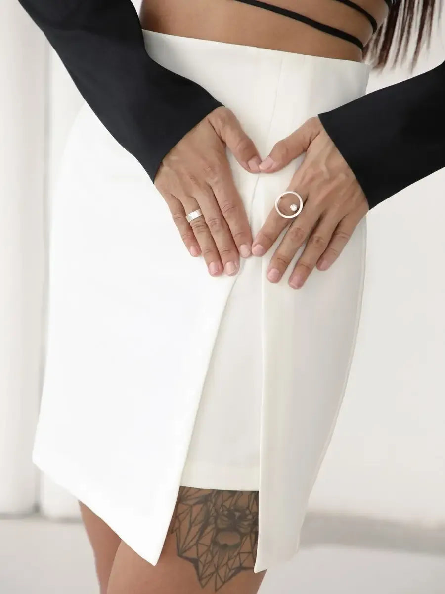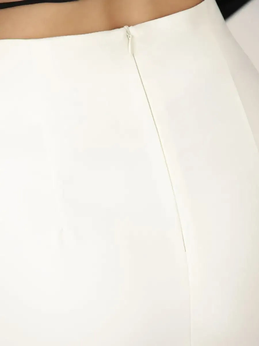 This women’s mini skirt highlights timeless tailoring with a modern edge — perfect for workwear, meetings, and chic evenings out. The milk-white hue adds a sense of refined minimalism, while the pencil fit elongates the figure, creating an effortlessly elegant impression. A concealed zipper closure at the back provides a clean finish and a perfect fit around the waist.