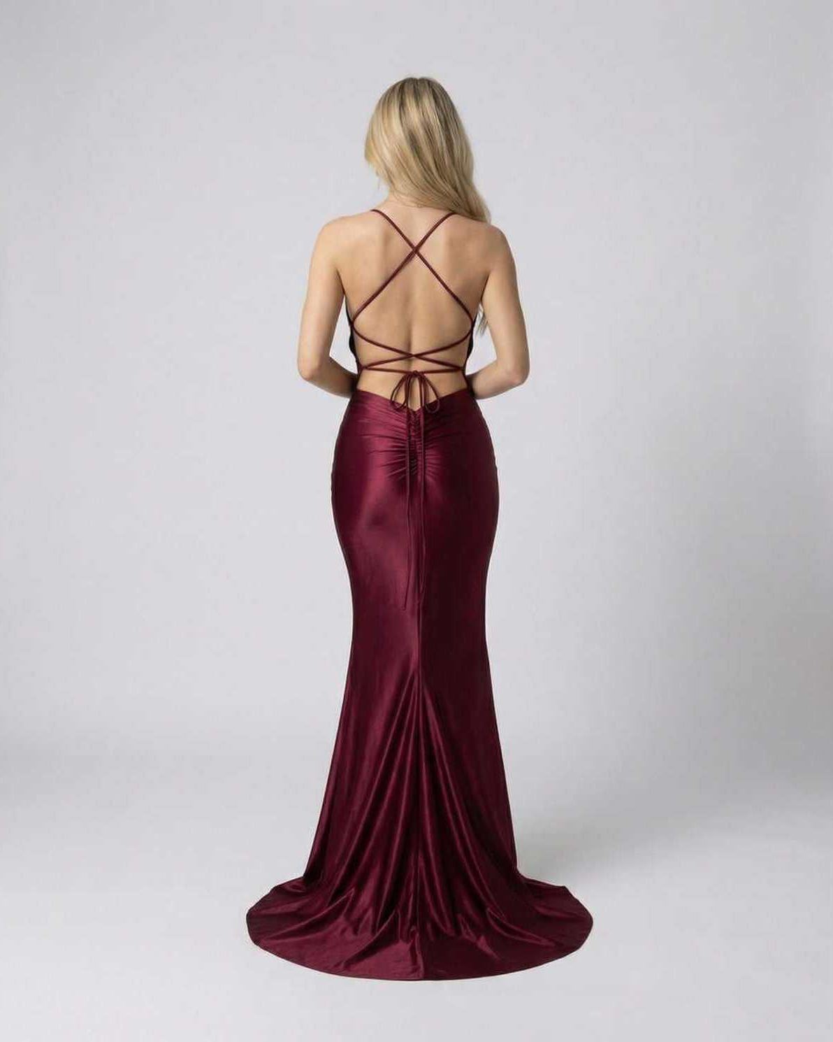 Make a stunning impression with this luxurious burgundy satin maxi dress designed for elegant evening wear.