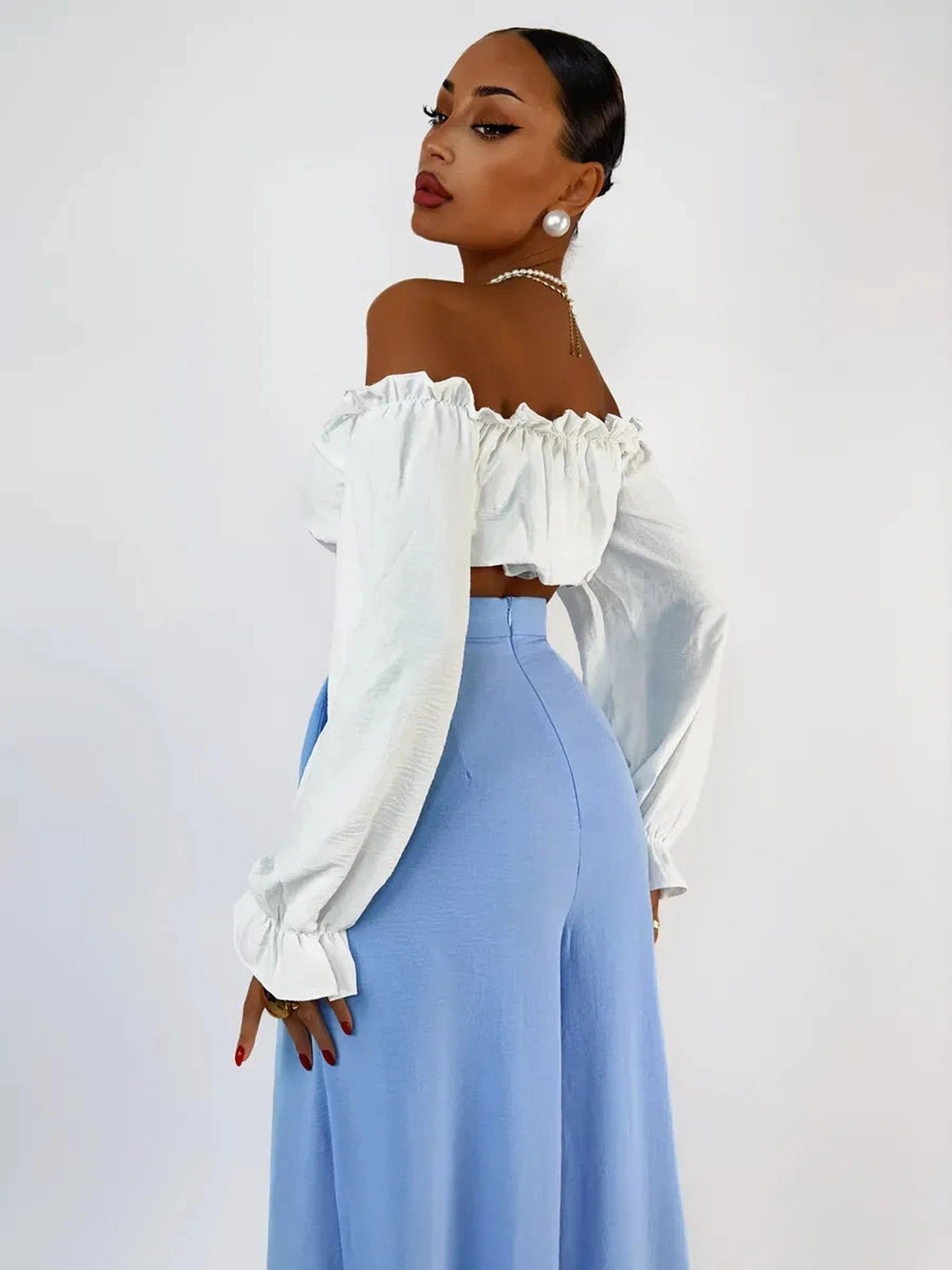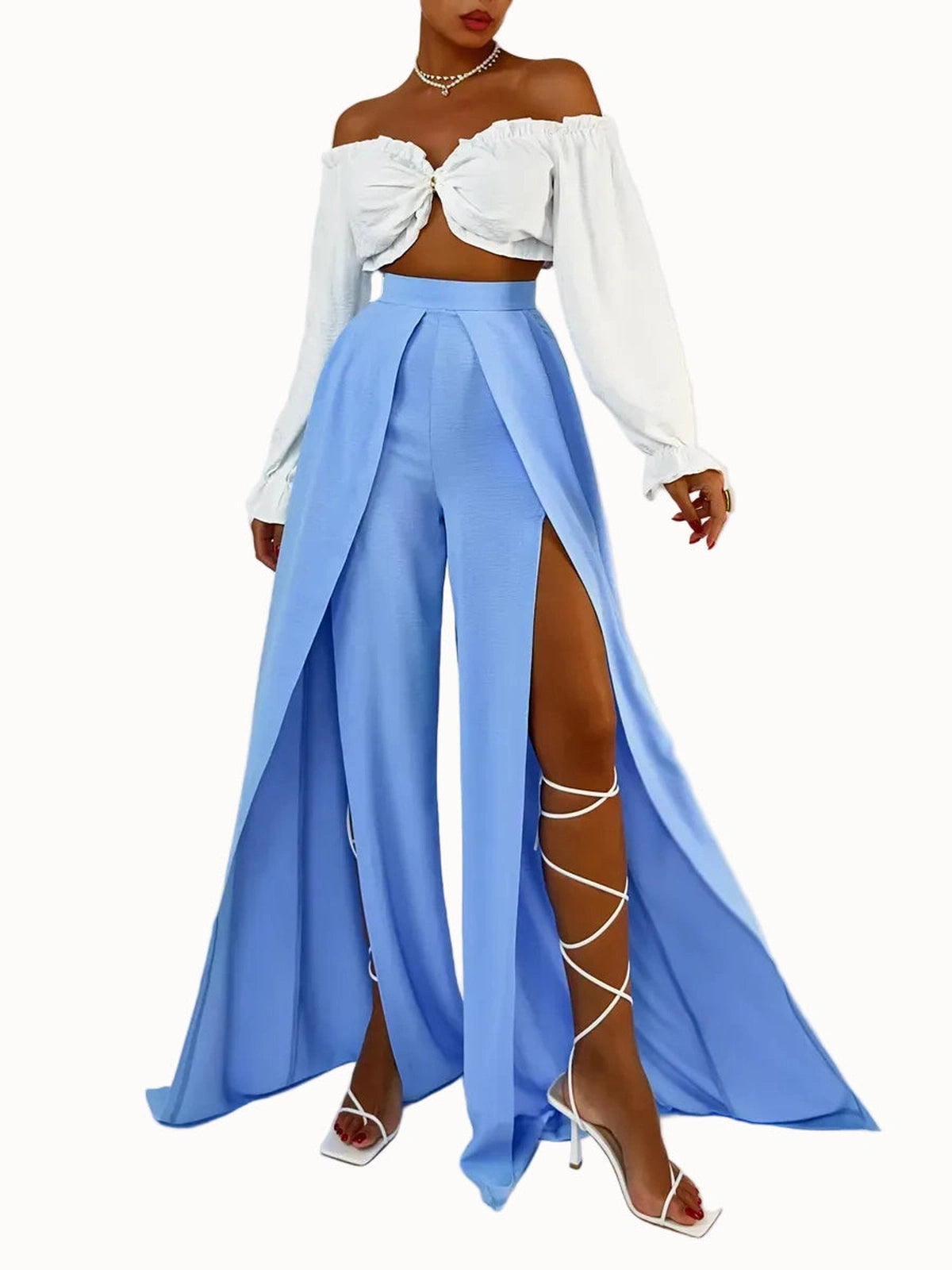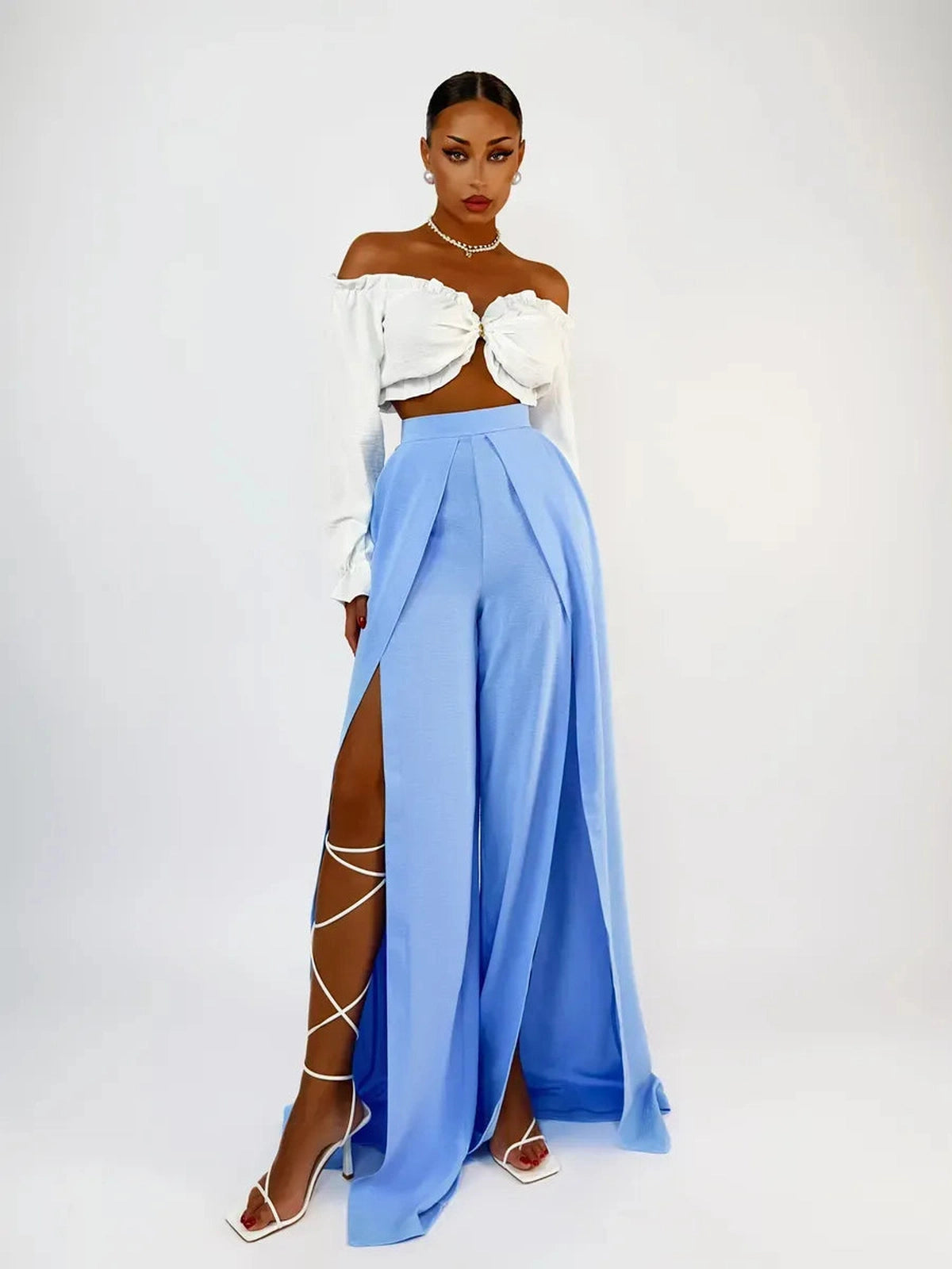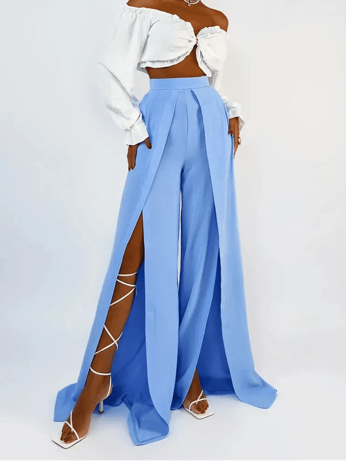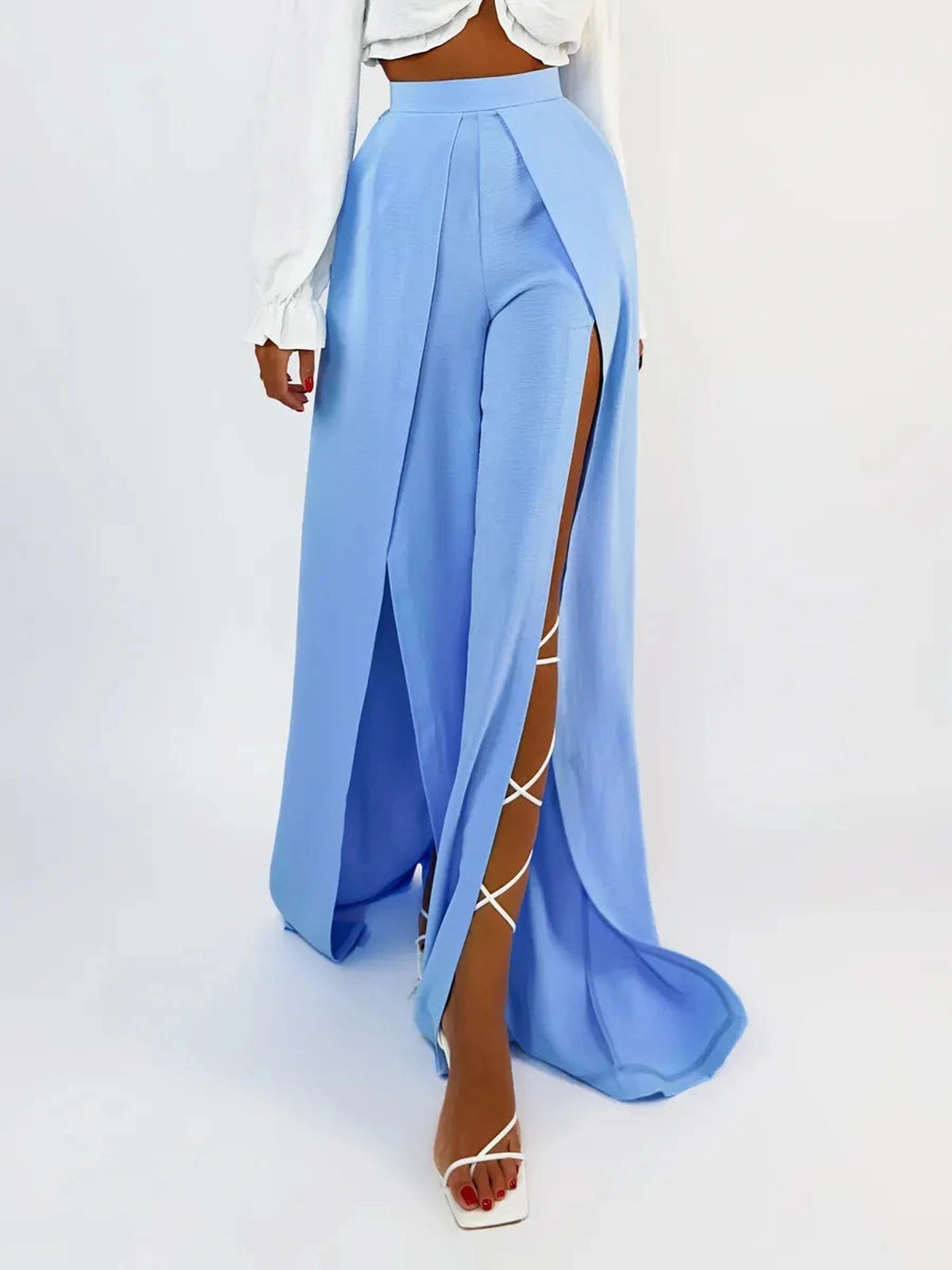 Refresh your collection with these elegant light blue wide-leg pants.