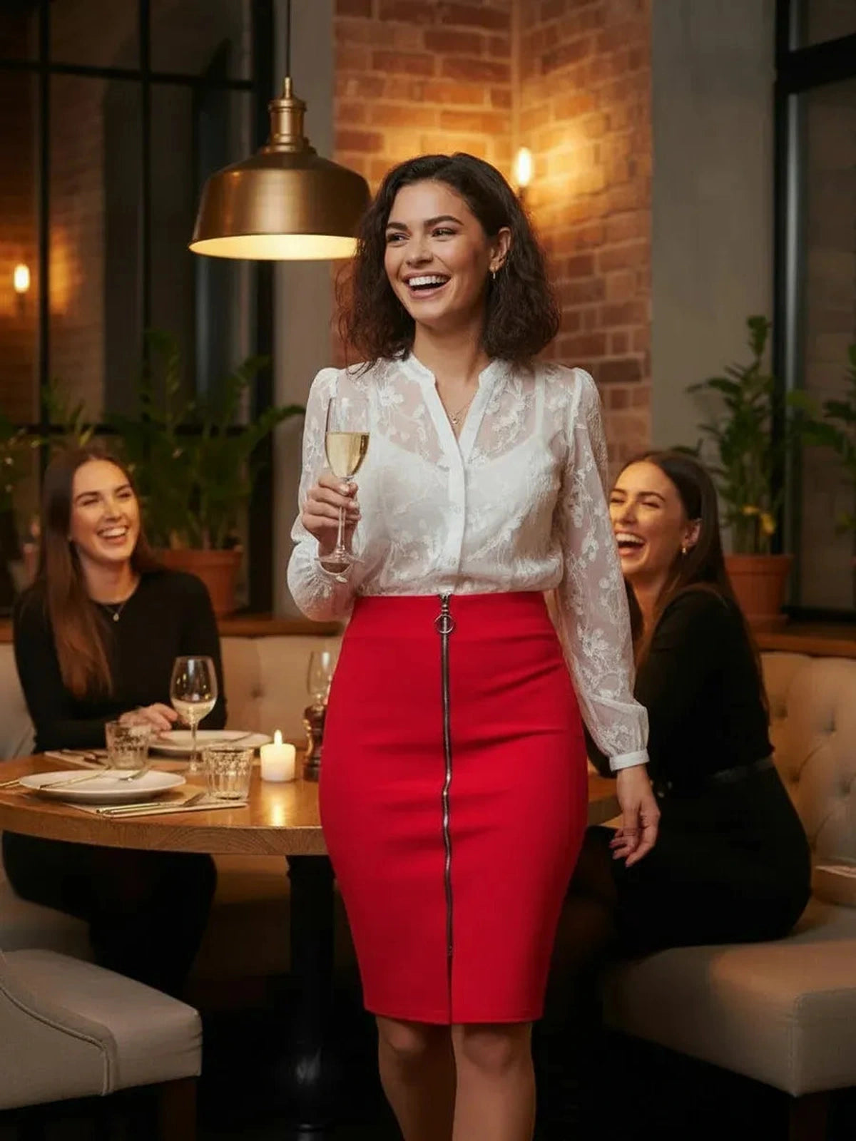 This sleek pencil skirt features a striking front zipper with a unique diamond-shaped pull, adding an element of modern elegance to the classic silhouette. Perfect for office wear, formal events, or festive occasions, the Ruby Midi Skirt combines style and practicality with its wrinkle-resistant, durable fabric that maintains shape and color after multiple washes.