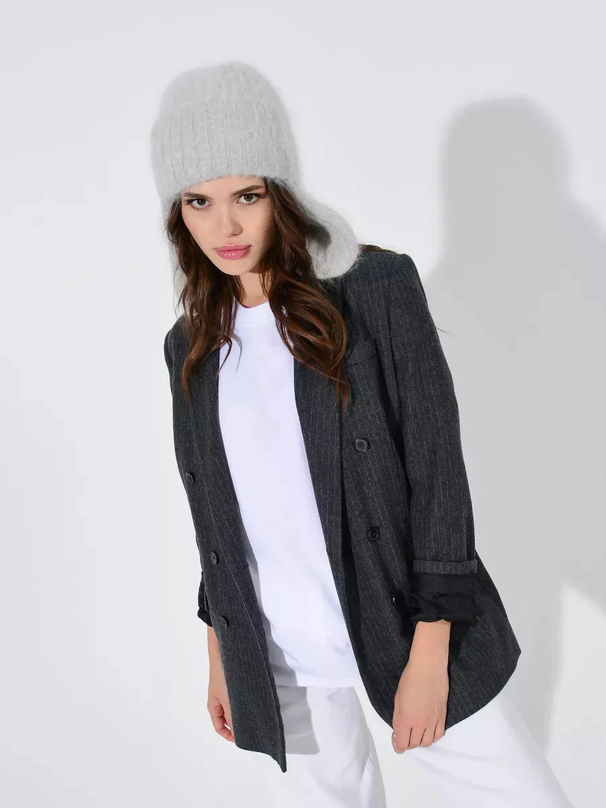 Snowfall Ushanka – Cozy Angora Knitted Hat with Ear Flaps in Light Gray