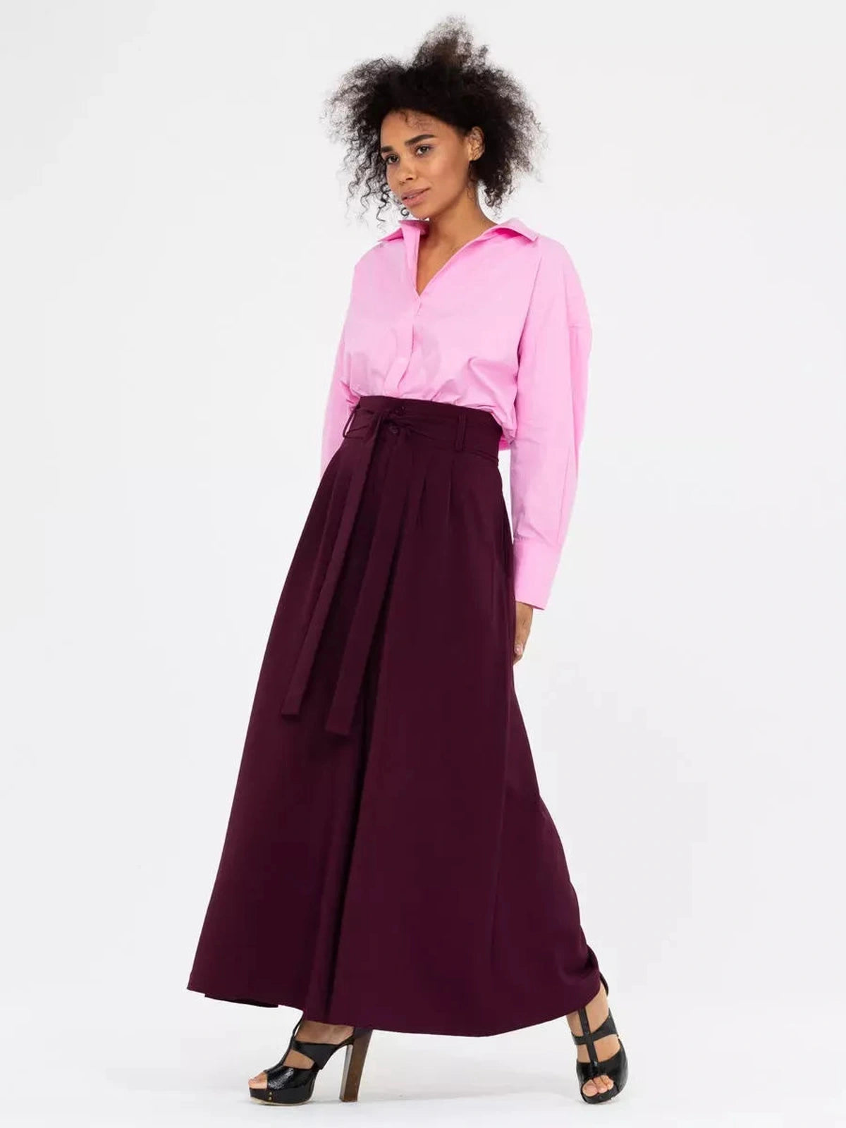 The wide-leg design elongates the legs and creates a graceful flow, making the Veda Pants suitable for business, casual, and evening occasions. The rich wine color adds a luxurious and striking element to your outfit, ensuring you stand out with sophistication.
