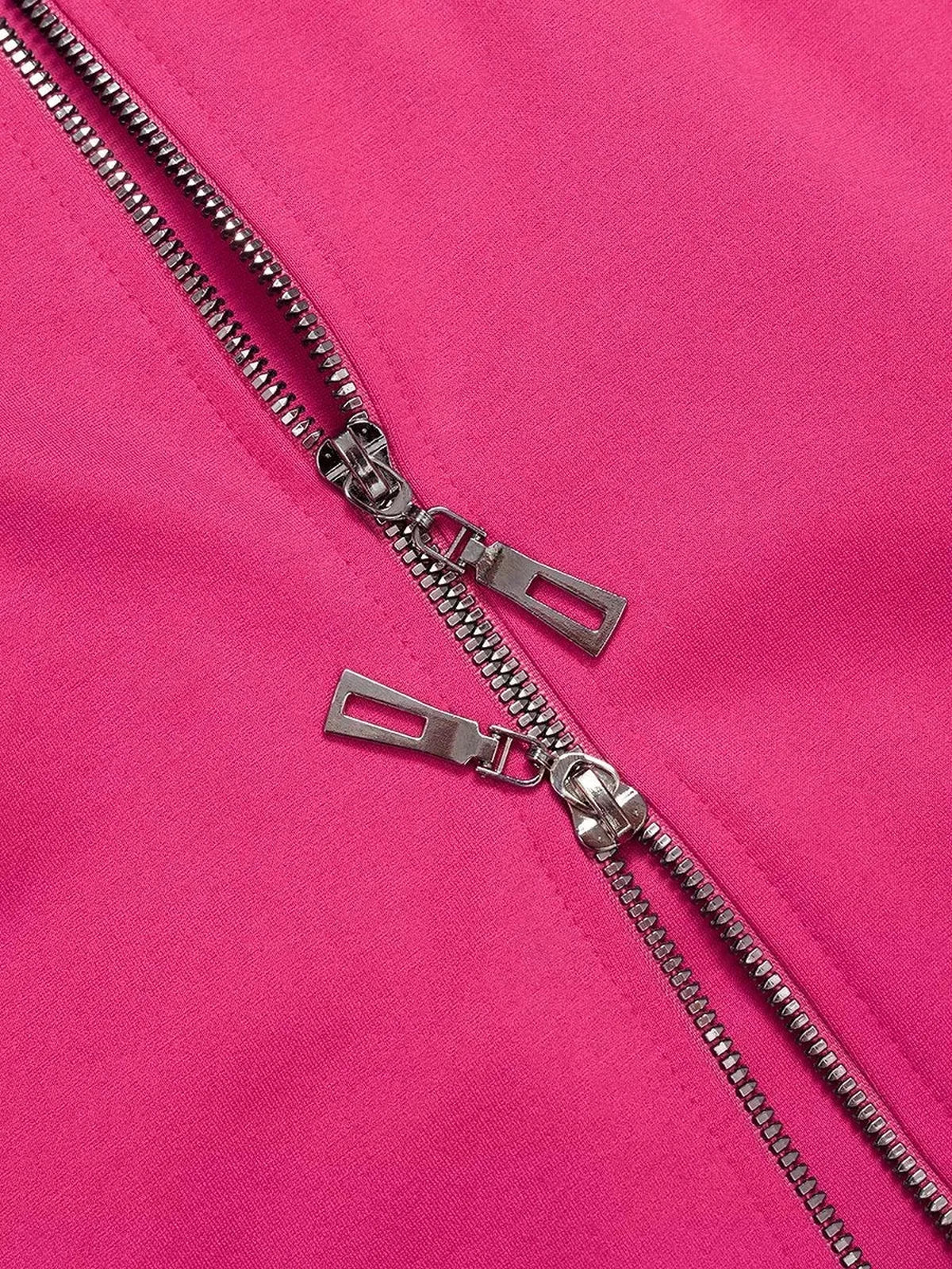 This dress features a stylish mock neck collar, short sleeves with a slight puff detail, and a full-length front zipper allowing adjustable neckline and slit depth. The absence of lining ensures a lightweight and breathable feel, making it ideal for both day and evening wear.