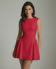 Sorrento Mini šaty sú výrazné červené mini šaty navrhnuté v elegantnom áčkovom siluete. Vyrobené z hladkej zmesi polyesteru a spandexu, tieto mini šaty s vysokým pásom ponúkajú štruktúrovaný živôtik s pružnosťou pre pohodlie a zachovanie tvaru. Čistý, bezrukávový výstrih vytvára moderný profil, zatiaľ čo jemne rozšírená sukňa prináša plynulý pohyb pri každom kroku.